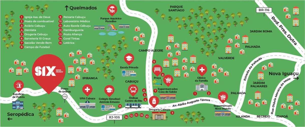 O Six Nova Iguaçu oferece tudo o que você e sua família precisam para viver com mais qualidade: apartamentos de 2 quartos com varanda, em um condomínio fechado com lazer completo. Piscinas adulto e infantil, academia, salão de festas, quadra, espaço pet, redário e muito mais — tudo planejado para seu conforto e bem-estar.